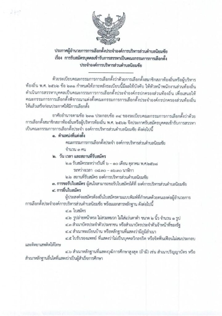 ประกาศรับสมัครบุคคลเข้ารับการสรรหาเป็นคณะกรรมการการเลือกตั้ง ประจำองค์การบริหารส่วนตำบลนิยมชัย